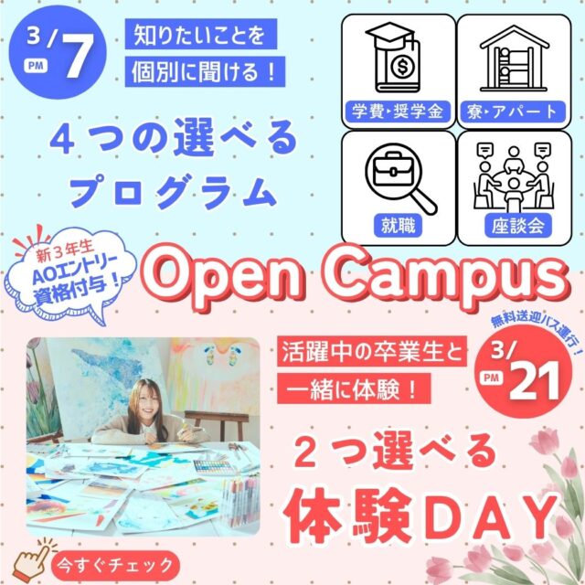 2026/01/16【2月オープンキャンパス】学生の集大成作品展示会【デザイン展】見学・在校生トークイベント開催✨