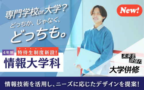大学・短大・就職からの進路変更を希望する方で、【情報大学科】※1に入学を希望する方