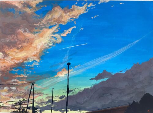 空のグラデーションと雲の質感にこだわりました。」